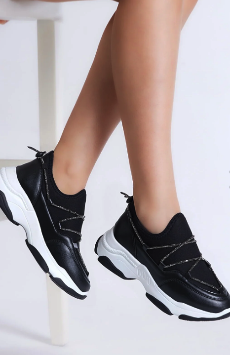 Tonny Black Women's Black Stone Striped Strec Sneaker